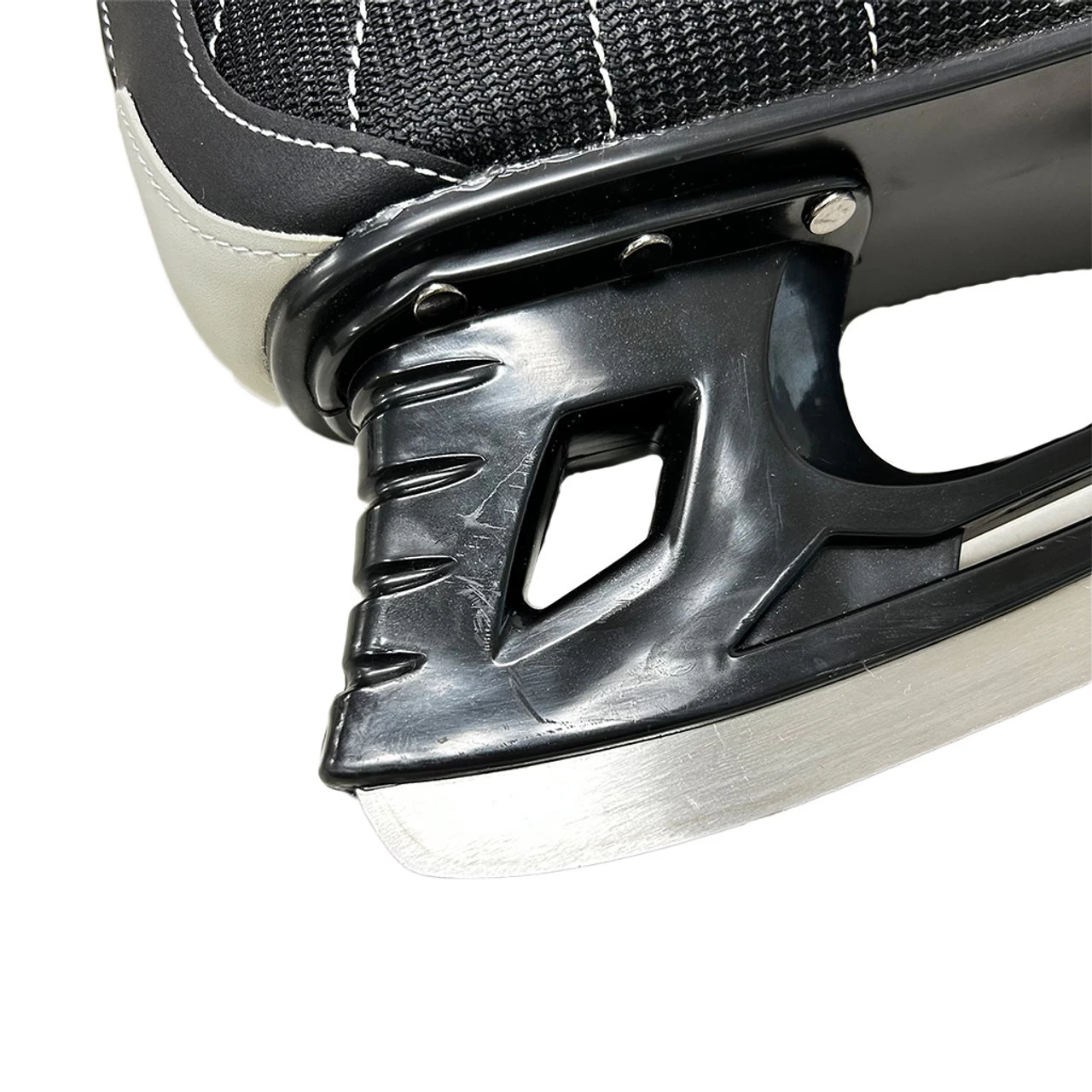 This soft boot hockey skate is great for skating while staying warm and comfortable. This hockey skate features thick foam padding for warmth and comfort, lace loops for quick lacing, Velcro strap for added support, and a multi layered boot construction to ensure ankle stability. This hockey skate is equipped with a stainless steel blade.