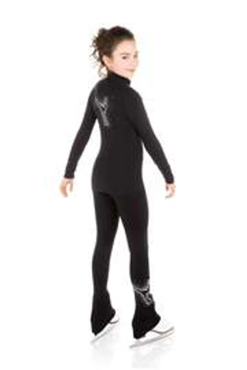 Bling figure skating training jacket decorated with rhinestones in a pattern of a figure skater doing a spiral Elite Xpression.