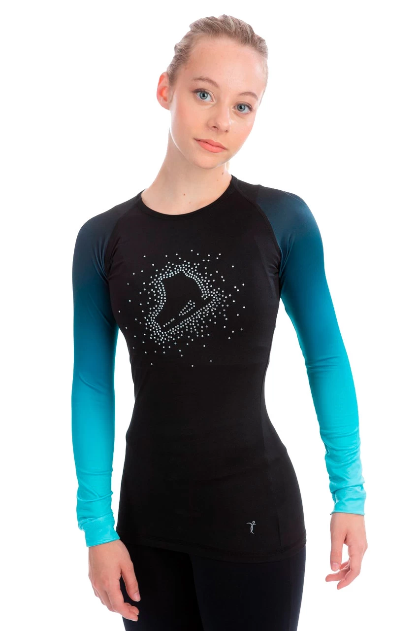 Faded figure skating training shirt decorated with rhinestones in a pattern of a skate from the Pastel Sprinkle Skate Collection by Elite Xpression