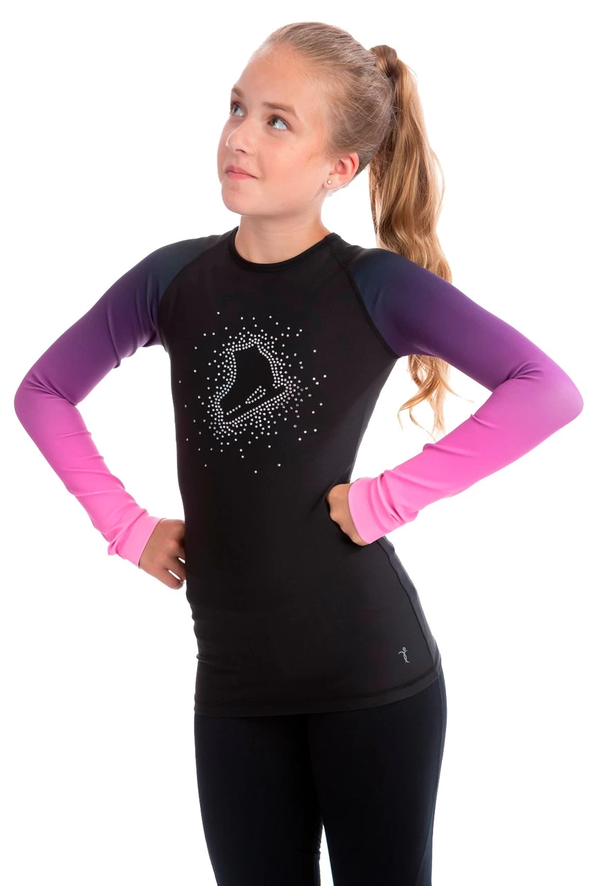 Faded figure skating training shirt decorated with rhinestones in a pattern of a skate from the Pastel Sprinkle Skate Collection by Elite Xpression