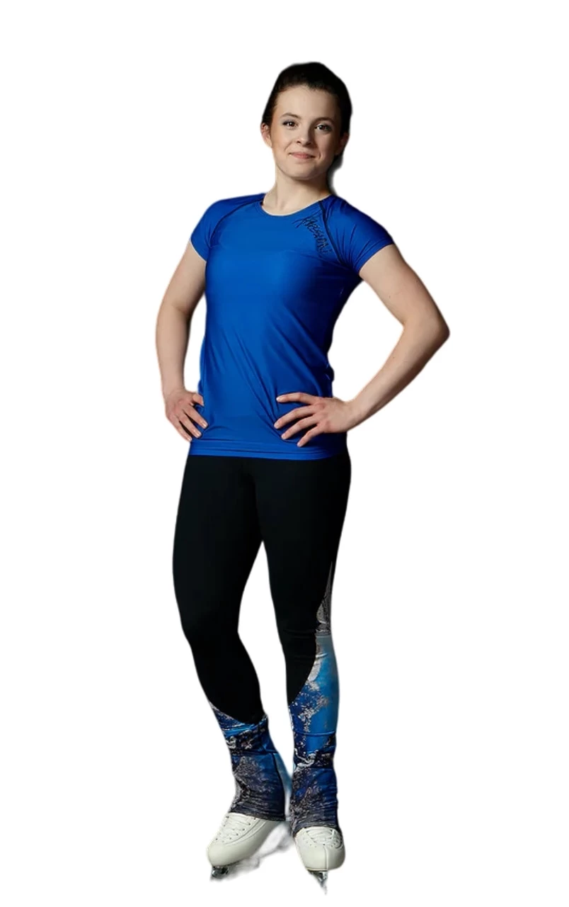 Black supplex legging with inserts sublimated with marbled blue color by Elite Xpression