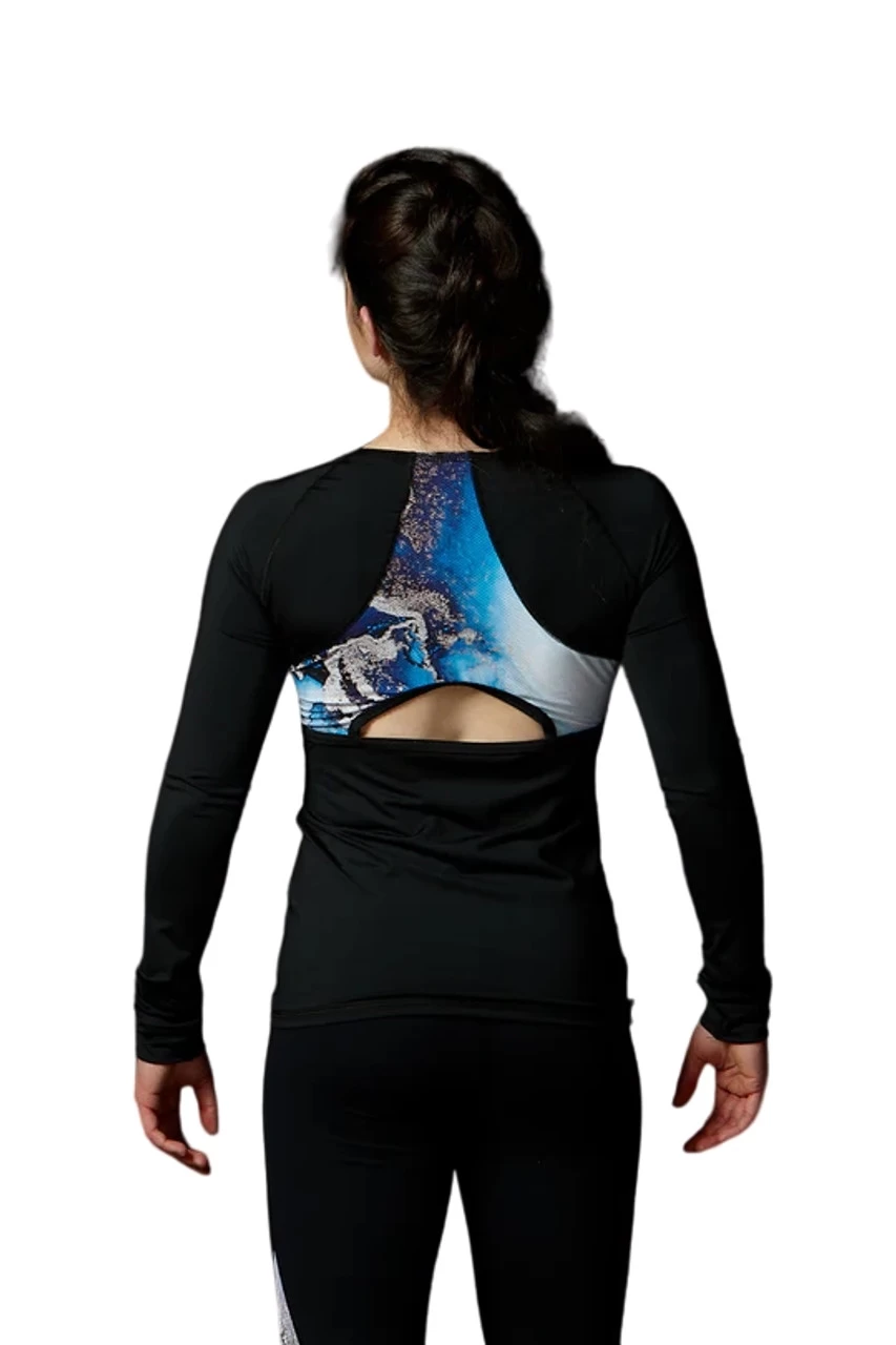 Performance long sleeve supplex shirt with printed royal blue insert and opening in the back from the Collection Elite Xpression.