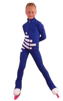 IceDress Figure Skating Outfit – Thermal – Jump (Dark Blue With Blue Stripes)
