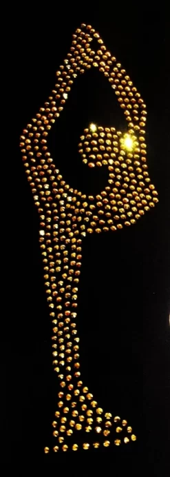 Figure Skating Pants With Gold Crystals “Biellmann” Rhinestone Applique