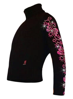 Bright pink rhinestuds and rhinestones mix “Neon Swirls” design. Sparkly crystals and fluorescent rhinestuds make this jacket eye-catching on the ice. Over 400 randomly mixed AB clear rhinestones and neon pink studs swirls around the left sleeve of the jacket. Fitted style without a hood and high performance Polartec fabric ideal for ice skating that demand freedom of movement, moisture management, and warmth. Enjoy skating and look great on the ice with premium ice skating jacket by Ice Fire – your way to shine!