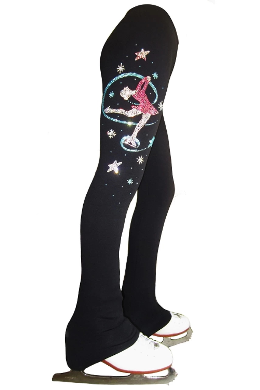 Polartec power stretch ice skating pants with “Colorful Layback” applique.