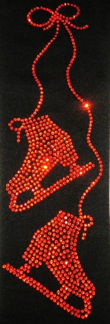Polartec power stretch ice skating pants with orange rhinestone applique. Featuring 600 bright orange crystals “Pair of skates” applique. Practice in warm, unique design pants and achieve your best result!