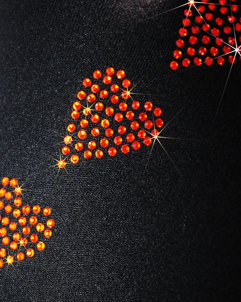 Orange rhinestones “Spiral Hearts” design. Over 30 rhinestones hearts swirls around right leg of the pants and make this jacket eye-catching on the ice. Available in warm Polartec fleece or non fleece fabric. Enjoy skating and look great on the ice with premium ice skating jacket by Ice Fire – your way to shine!