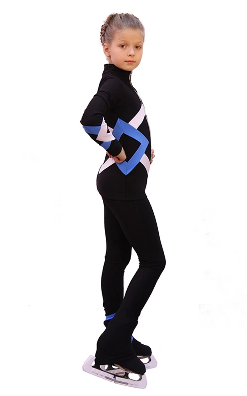 Training outfit “Bauer” made from Vuelta thermal fabric by CarvicoSpA from Italy.New range of ice skating outfits for 2017-2018 season.Figure Skating Outfit “Bauer” consists of a thermal jacket and thermal pants with original design. For an elegant and concise design, this decision is the main focus. Asymmetrically arranged horizontal stripes that go from jacket to the pants to attract the attention of any visual projection. These trim elements advantageously isolate the figure a young athlete on the ice and the fit gives freedom of movement. The bottom of the pants is decorated in an unusual way and has a clasp that secures the pants under the heel of the skate.The Vuelta fabric, in turn, ensures good stretchability in four directions, recoverability, and a perfect fit. Excellent thermal insulation properties, together with optimal breathability, as well as anti-bacterial fabric treatment makes this outfit an excellent choice for a young athlete. Furthermore, the outfit is made of a fabric which is extremely practical, extremely resistant to abrasion long lasting, and extremely durable. We remind you that the color combination of the model can be changed to your liking