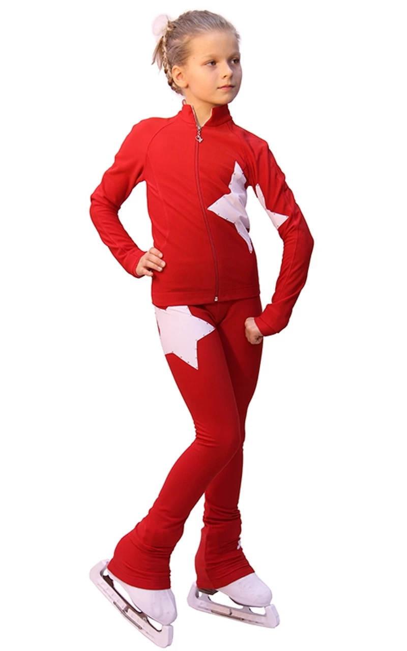 IceDress Figure Skating Outfit – Thermal – Star (with Pants) (Red With White)
