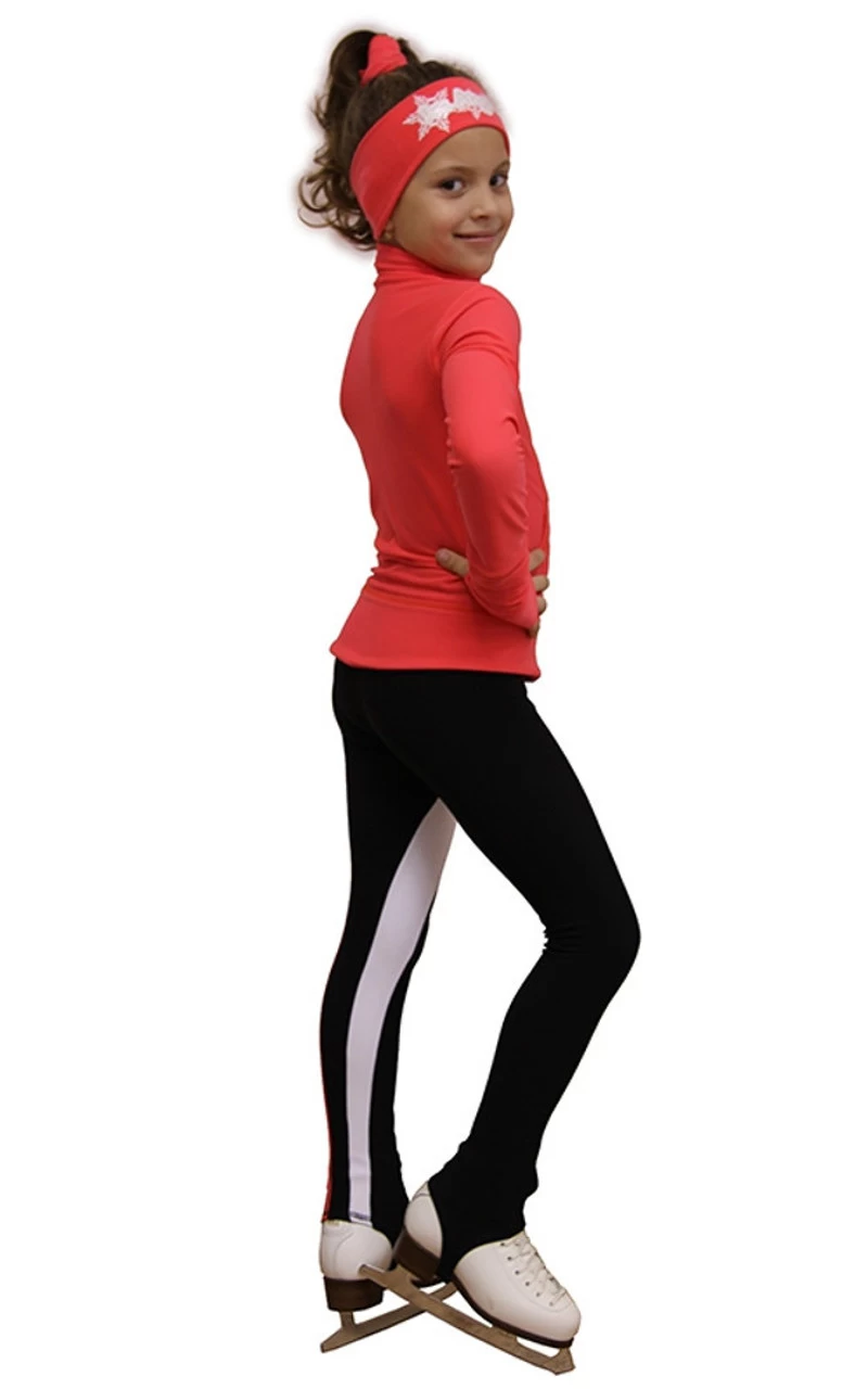 Training outfit “Twizzle-2” for figure skating is made of the Italian techno-fabric Vuelta. “Twizzle” is a carefully selected and thoughtful mix of patterns, colors and accessories. We are pleased to offer you one of variants of combination – kit “Twizzle-2”. The kit includes: jacket “Drape-1″( coral with rhinestone), 3-color leggings (black, coral, white) and coral headband with thermo applique. The undoubted advantage of the jacket is a bright coral color and applique of rhinestones. The design of the jacket is fascinating with its perfect fit and interesting details. Draping on the stand-up collar and cuffs-gloves, finishing lines, all relief lines, make it extraordinary and attractive. In addition to the jacket we offer 3-colored leggings and a headband “IceAngel”. Three colors that our designers used in these leggings detail jacket, and accessories. Thermal transfer applique in white on a coral headband echoes the leggings, and completes this trendy and dynamic image, created by our designers. All colors are interchangeable. You can choose any color combination for this kit, leaving your comments while making the order.