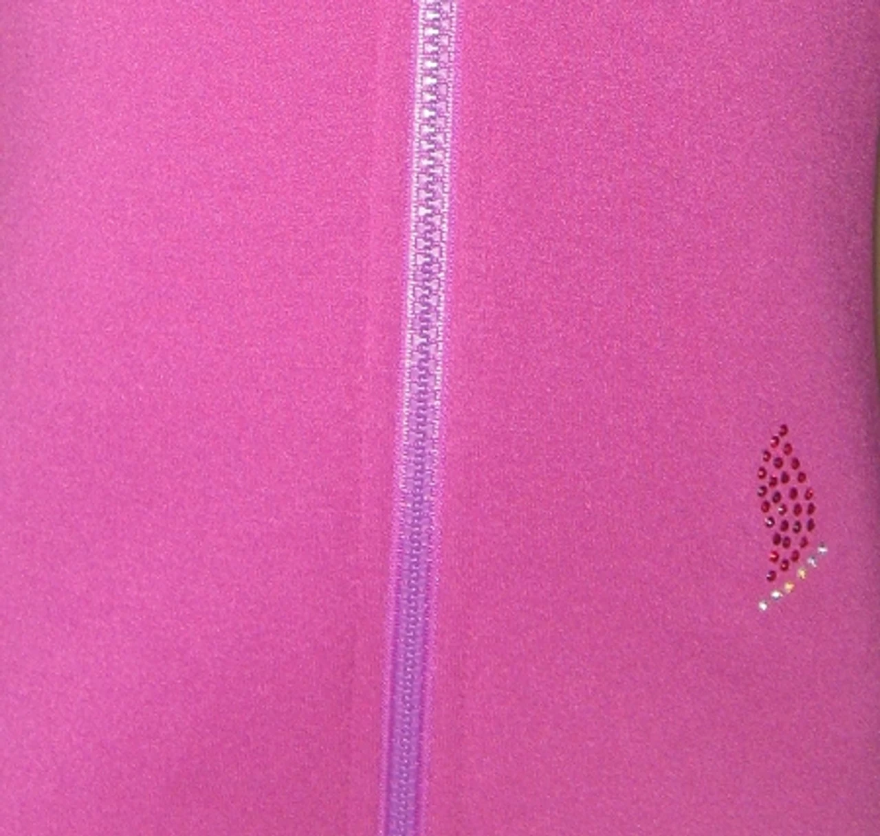 Polartec power stretch ice skating jacket with crystal applique: apx.400pcs. superior machine cut czechoslovakian rhinestone size ss10 AB crystal. Great for every day practice and competition event. Fitted style without a hood and high performance polartec fabric ideal for ice skating that demand freedom of movement, moisture management, and warmth.