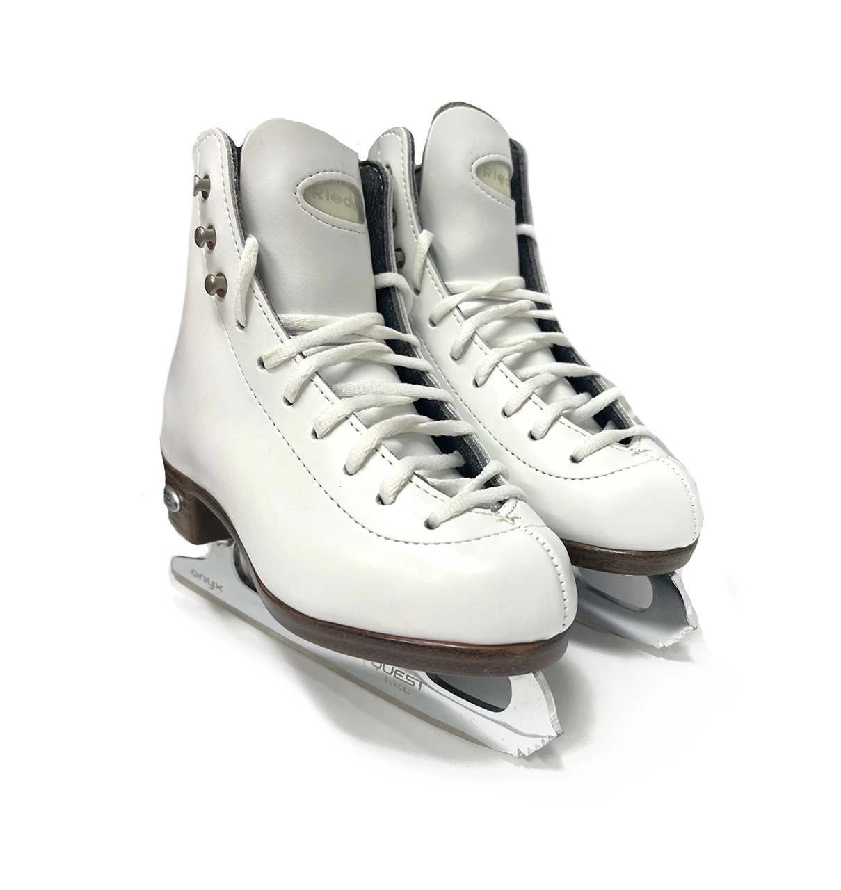 The Riedell Model 33 is a top-level recreational figure skate with competition level support. Featuring an open throat design and leather reinforced uppers with urethane coating for protection and strength. The leather reinforced split tongue design provides superior stability and comfort. Leather uppers comparable to competitive level skates; PVC sole unit with textured Dri-Lex® lining keeps feet dry; New, improved pattern with petite rolled collars; Fits like an instructional skate; Allows firmer tightening of cuff; Diamond lace bar decoration; Quest Onyx chromed tempered steel blade.